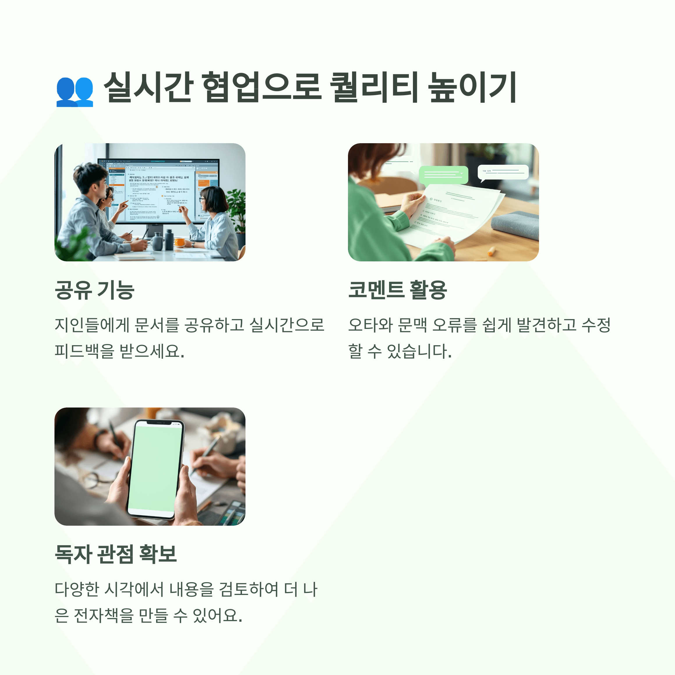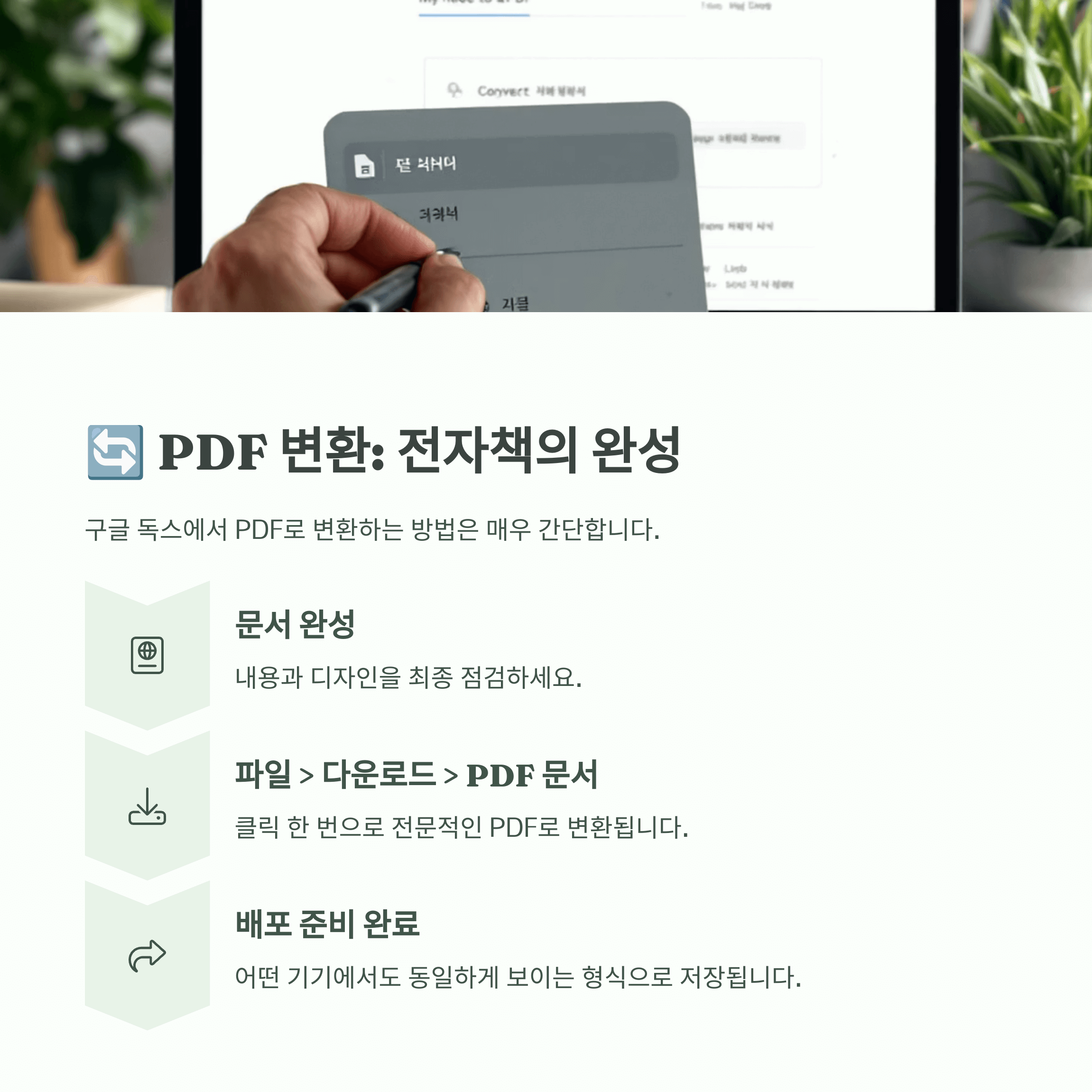 또한 전자책 제작 과정을 온라인 강의로 구성하거나, 인쇄하여 오프라인 출판으로 확대하는 것도 좋은 전략입니다. 구글 독스로 만든 문서는 쉽게 복사하거나 수정할 수 있어서, 콘텐츠 확장이 매우 자유롭다는 장점도 함께 느꼈습니다.