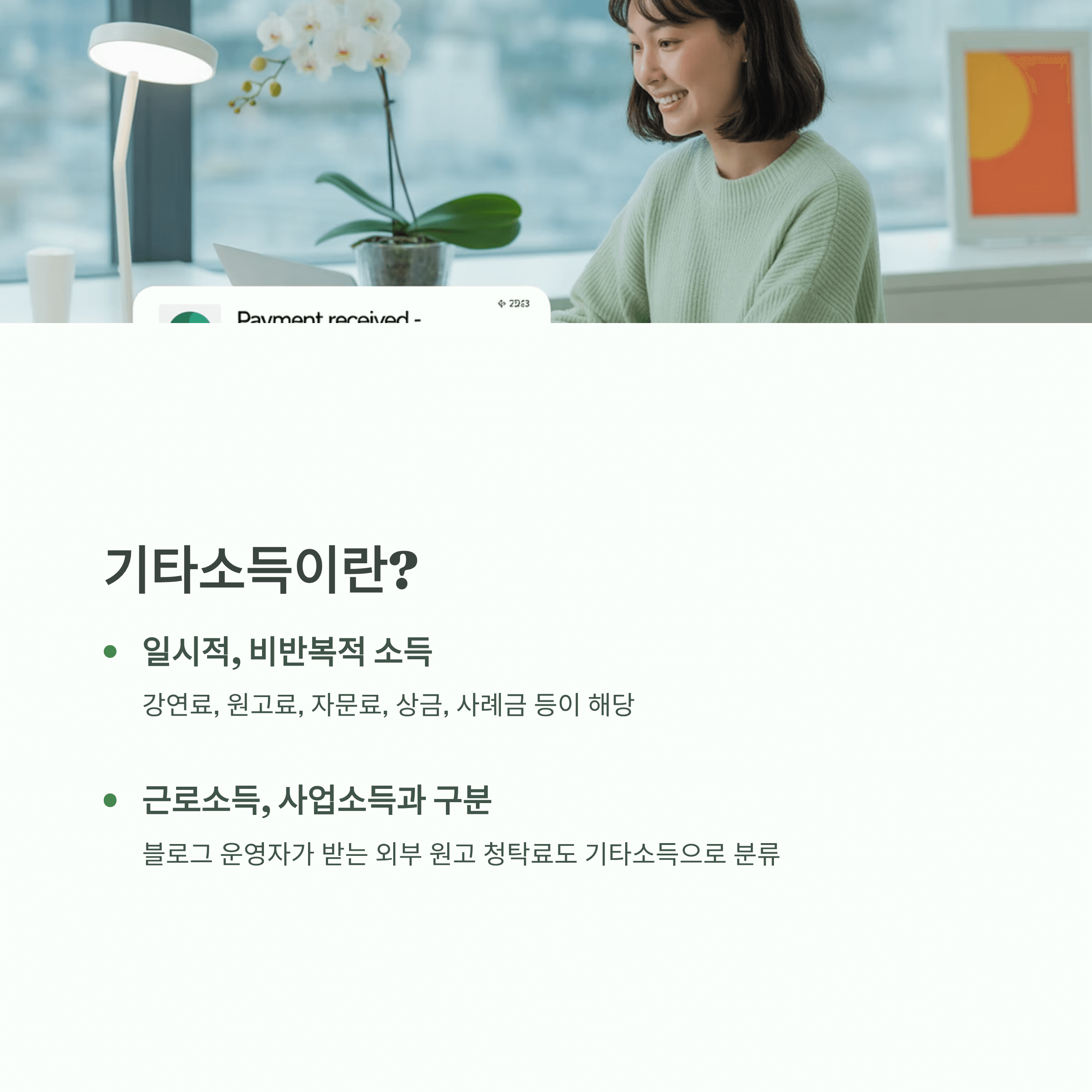 기타소득은 흔히 받는 월급(근로소득)이나 사업소득과는 조금 다른 개념입니다.