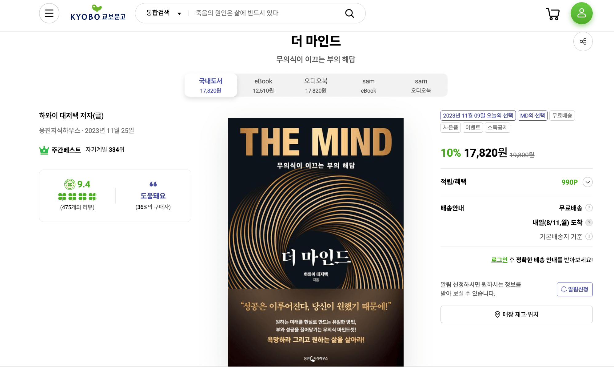 그리고 저의 '경제 관심'에 조금이나마 도움이 될만한, 무의식 + 경제(나의 목표)를 한번에 관심을 두고 읽을 만한 책인 것 같아. "더 마인드"라는 책을 대여해서 읽게 되었습니다.