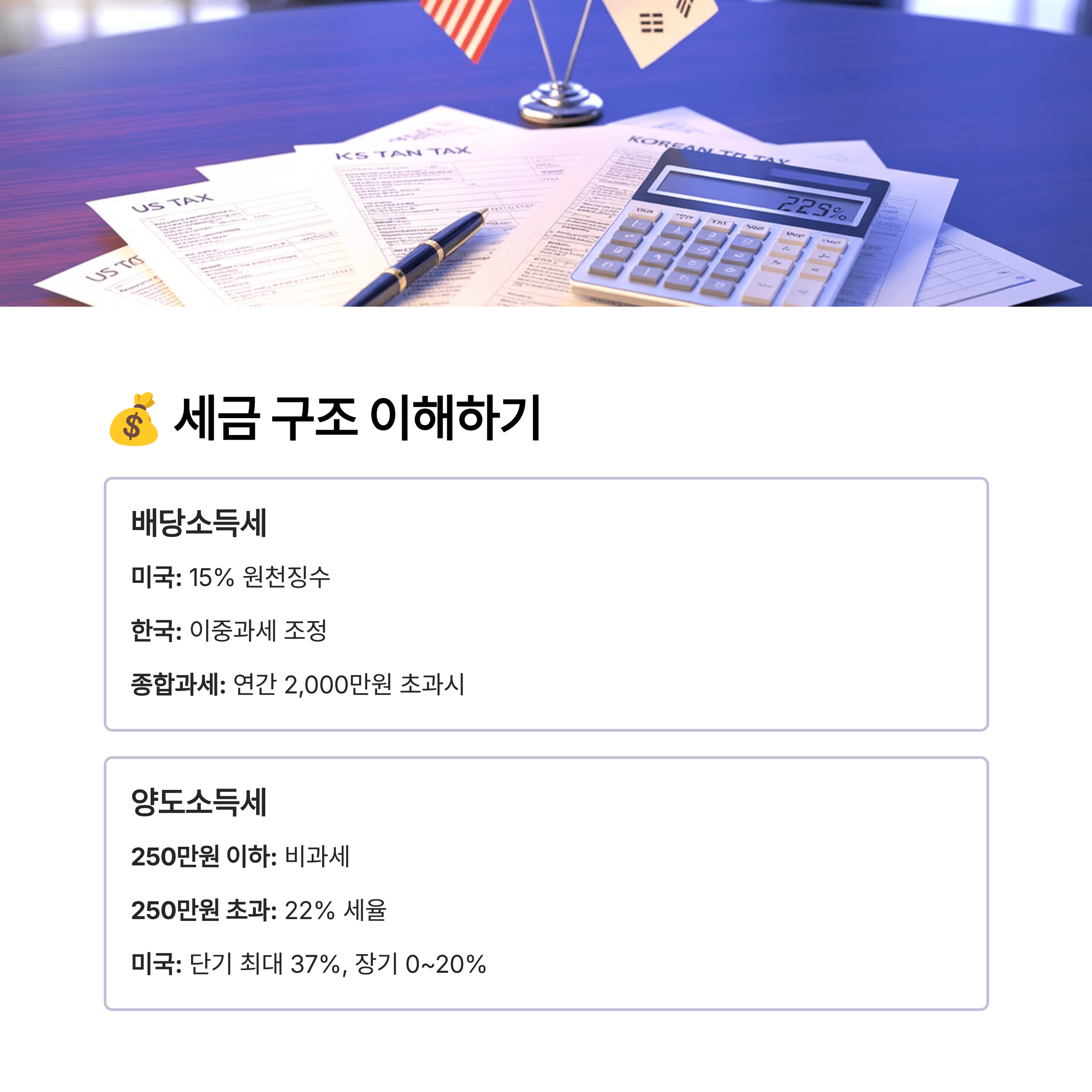 미국 주식 투자 시 발생할 수 있는 세금은 크게 두 가지입니다.