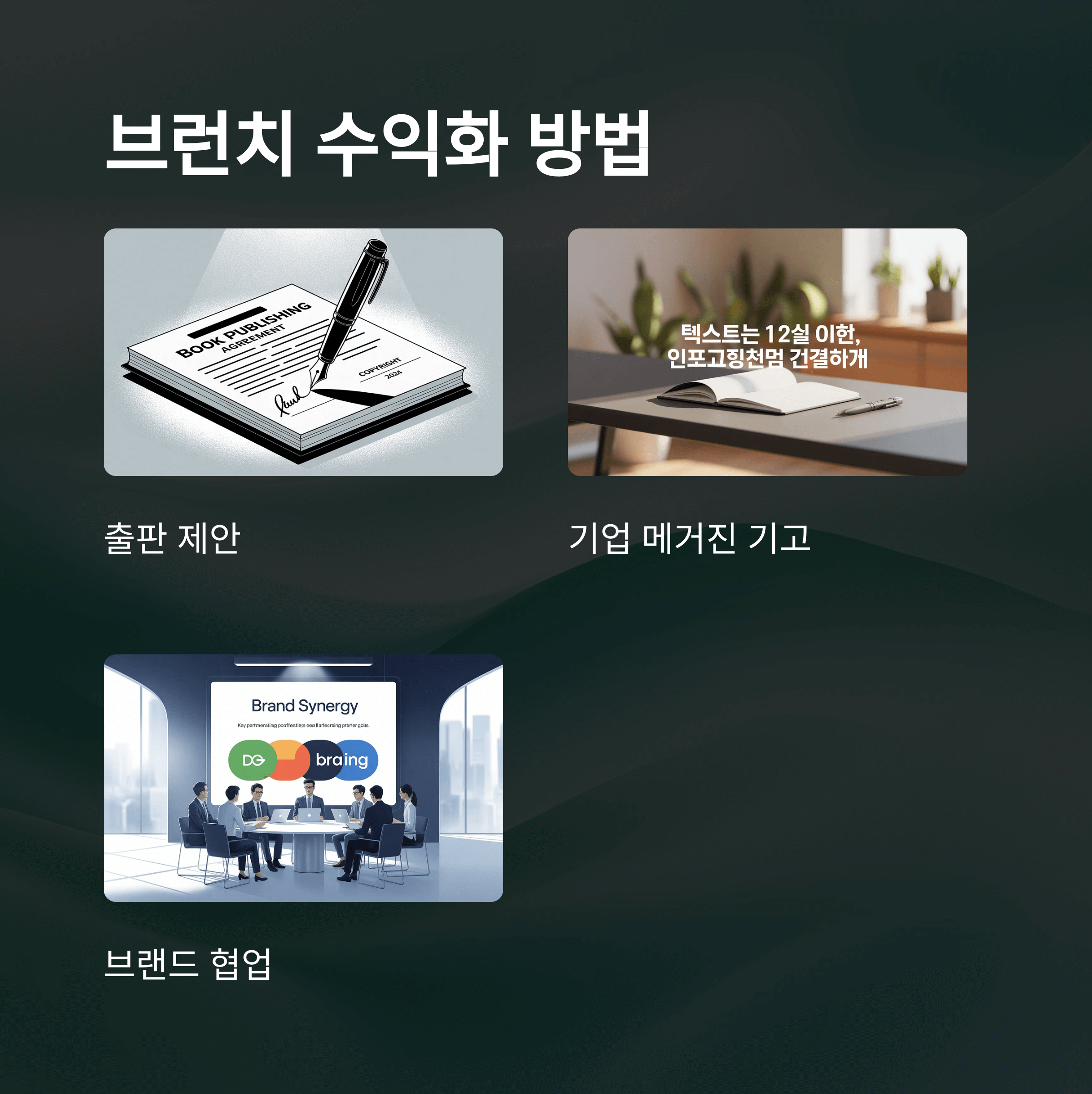 앞서 말했듯 브런치는 직접적인 광고 수익은 없습니다만, 여러가지 간접적으로 수익화를 진행할 수 있습니다.