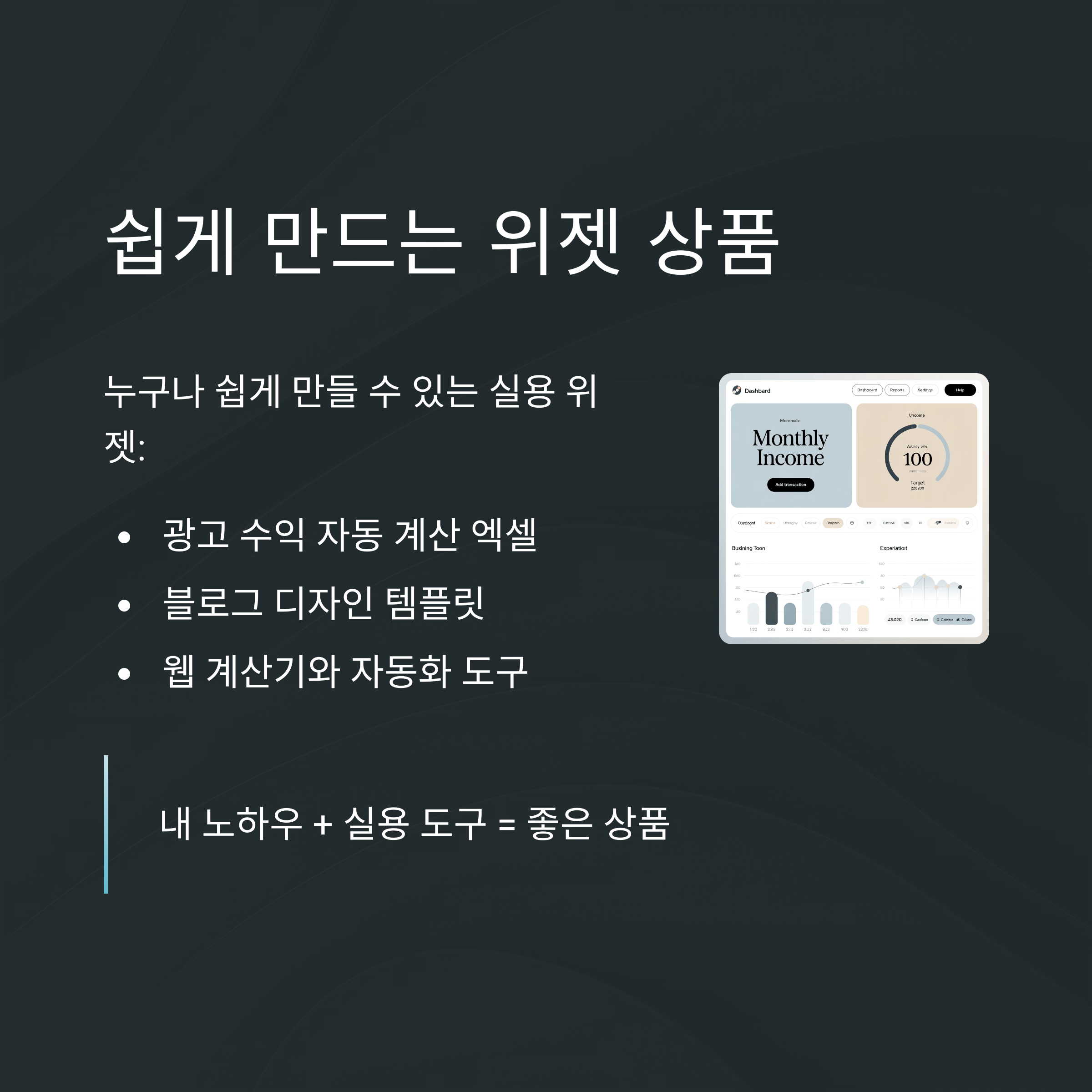 나만의 노하우 + 실용적인 도구 = 훌륭한 상품