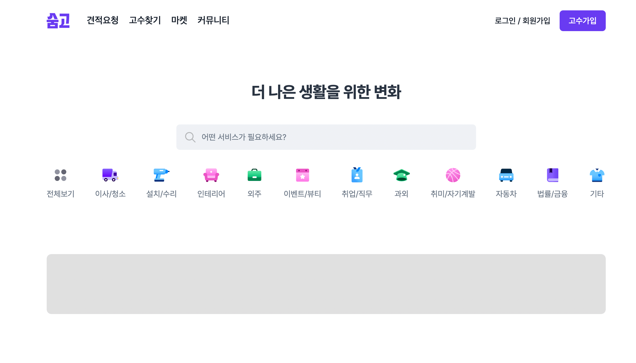 가사, 이사, 청소, 웹개발 등 지역 기반 서비스에 특화돼 있어요. 소비자가 요청서를 올리면 전문가가 견적을 보내는 방식입니다