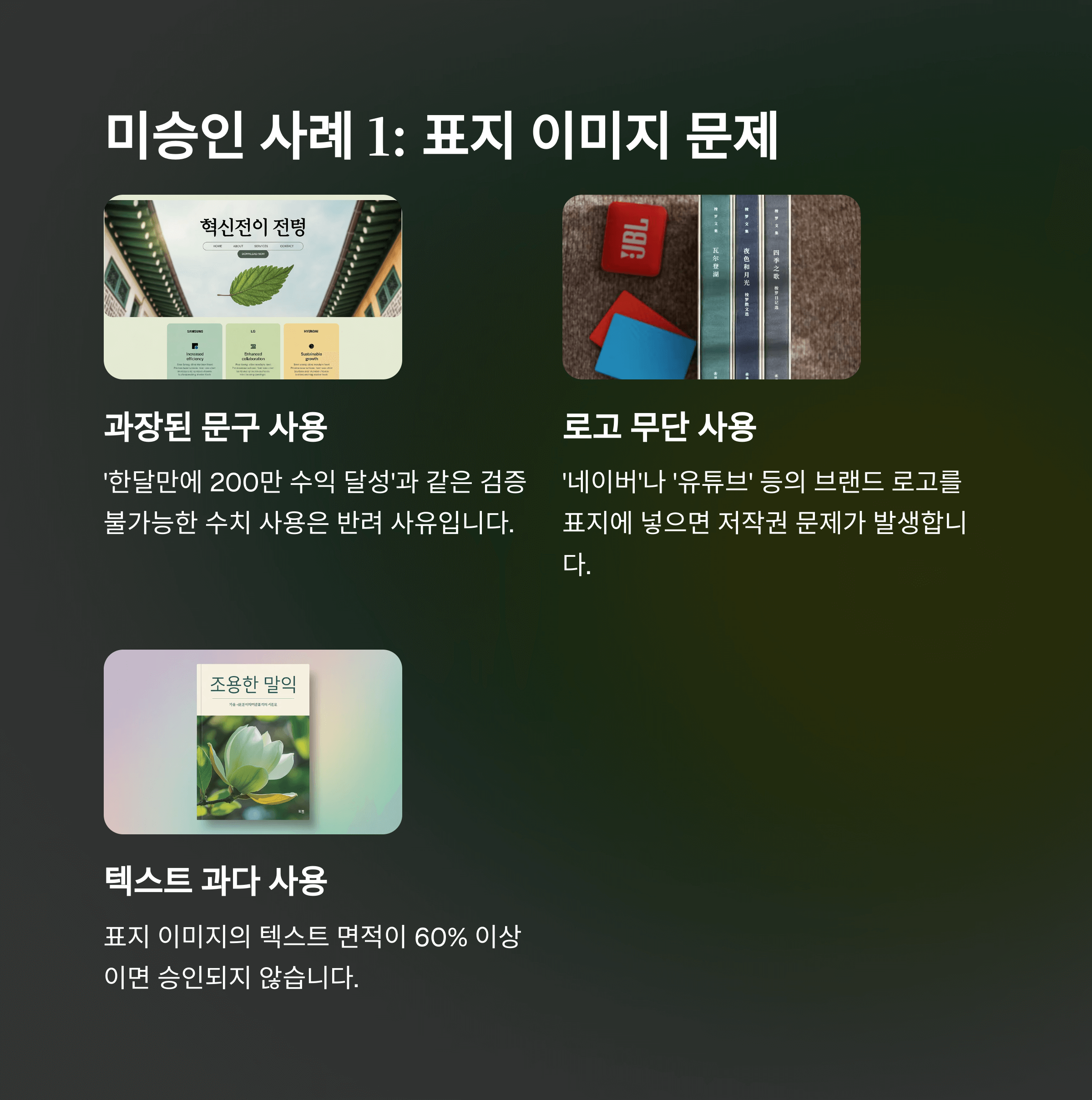 -표지 이미지의 텍스트 면적 과다 사용 (70퍼센트 이상)