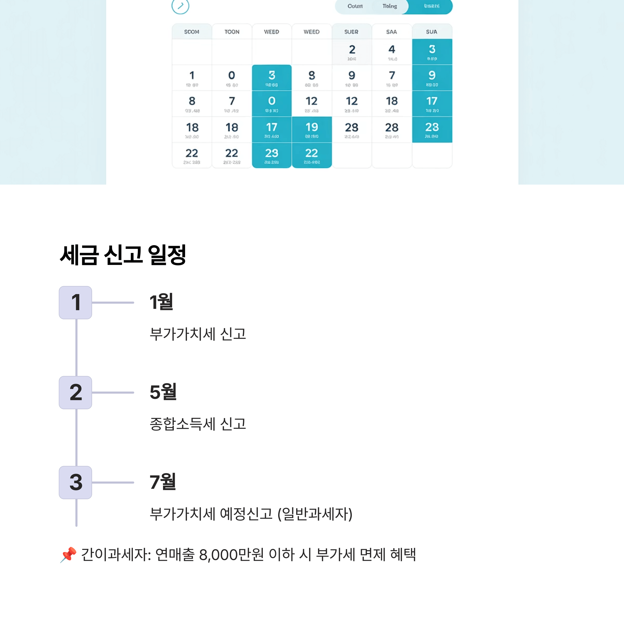 - 사업자등록 후에는 정기 세금 신고 의무가 생기지만, 간이과세자는 세무 부담이 적고 다양한 혜택도 받을 수 있습니다.